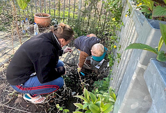 Laatste oogst uit de schoolmoestuin en bloemen geplant voor de zomervakantie.