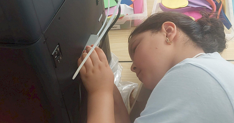 Wat zijn we blij met onze nieuwe 3D printer! De kids van groep 5/6 helpen nog even mee om hem in elkaar te zetten, fijn!