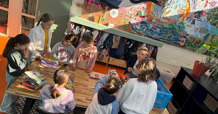 De kinderen van groep 6/7 gingen op boekenspeeddate tijdens de KBW.